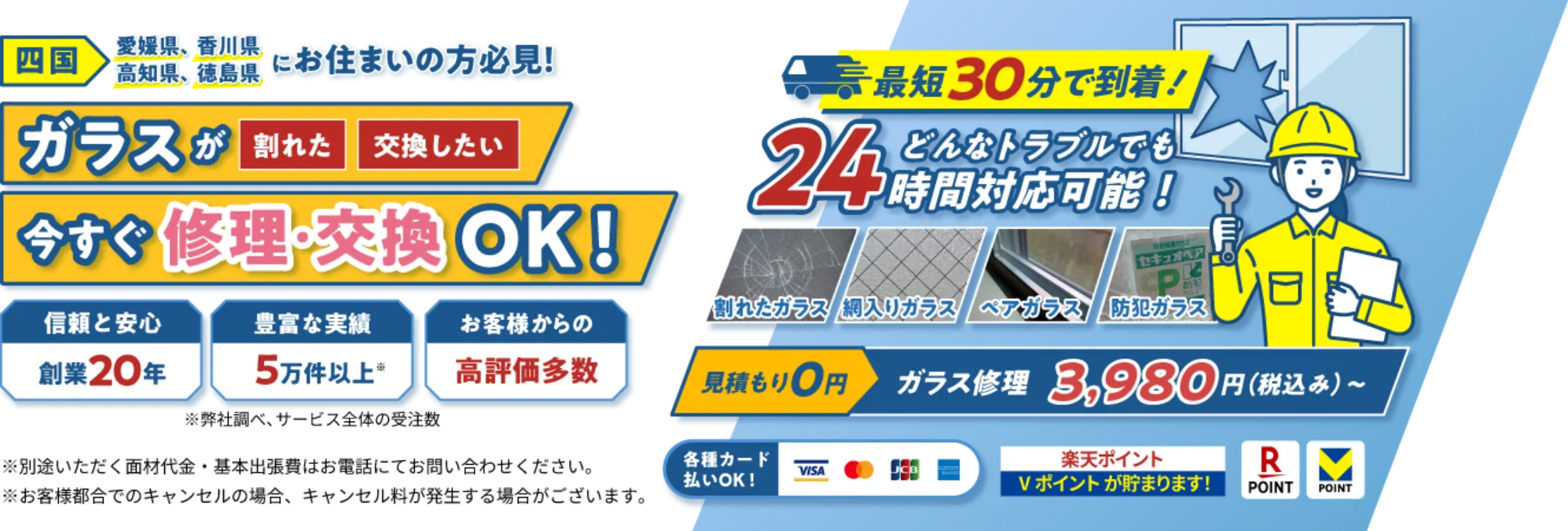 飲食店を経営していますが、深夜の閉店後に店舗のドアガラスが割られてしまいました。防犯の面でもすぐ対処が必要だったため、24時間対応のこちらに連絡。深夜にも関わらずすぐに来てくれて、仮ガラスの設置まで対応してくれました。翌朝には通常営業ができ、本当に助かりました。トラブル時にも頼れる業者さんがいるのは心強いです。商売をしている方には特におすすめしたいです。